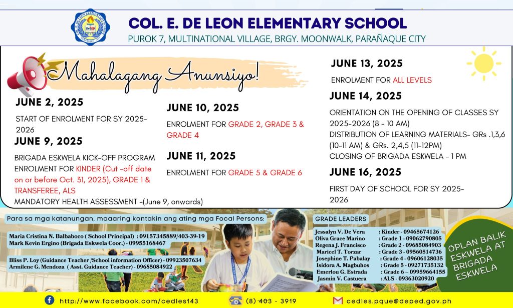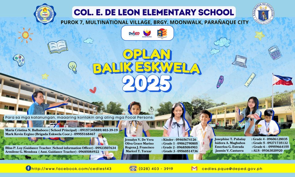 Your hard work and dedication have brought immense pride to Col. E. De Leon Elementary School. Keep striving for excellence!